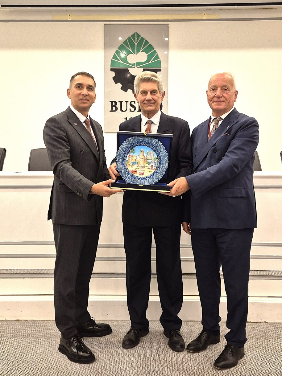 BUSİAD Başkanı Küçükkayalar, BUSİAD'la ilgili sunum yaparken, ANSİAD heyetinin sorularını da yanıtladı. İlişkilerin geliştirilmesi gerekliliği konusunda fikir birliğine varılan ziyaretin sonunda başkanlar birbirlerine anı tabağı hediye ettiler.