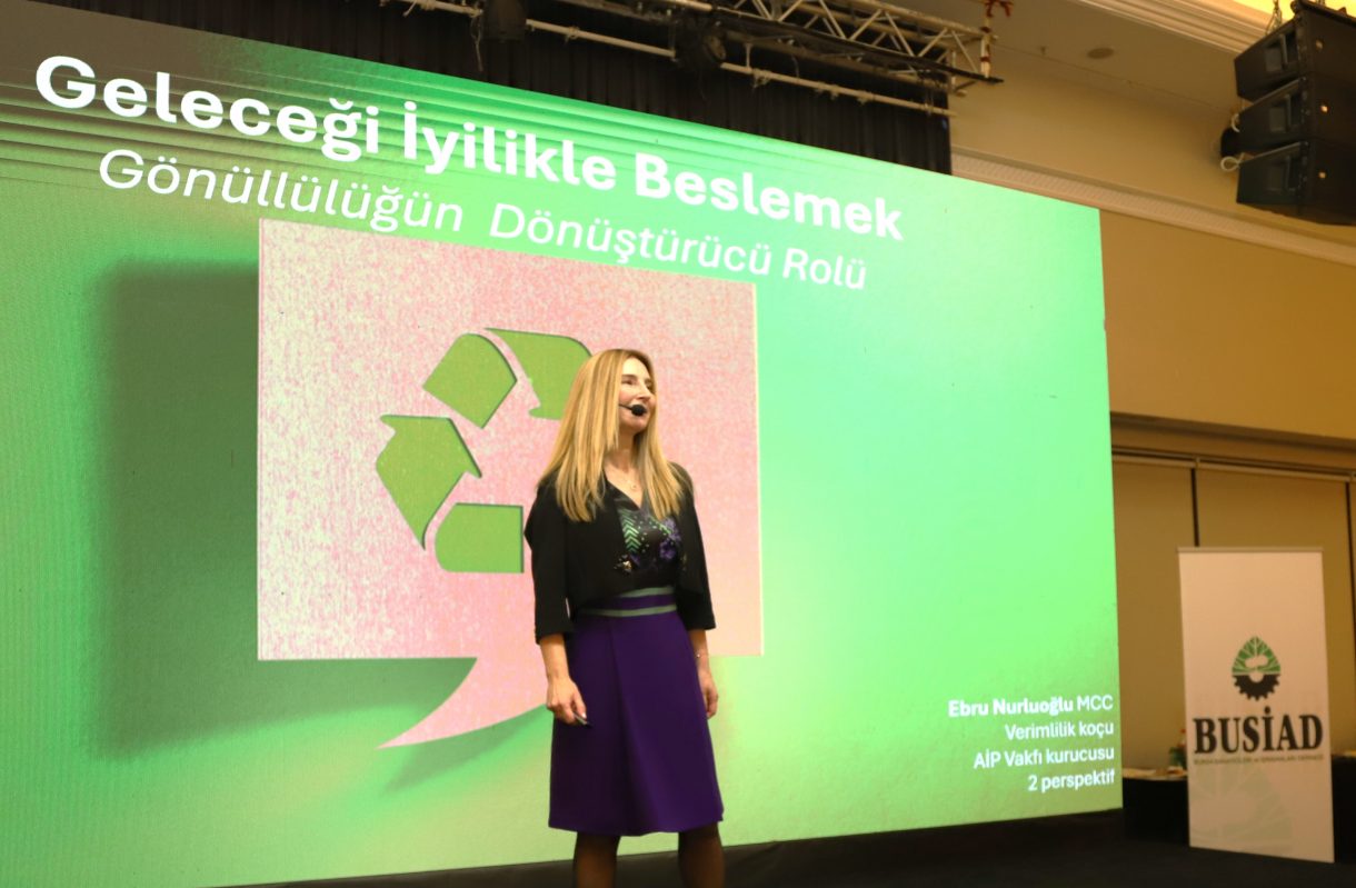 BUSİAD iftar programında konuşan Acil İhtiyaç Projesi Vakfı Kurucu Başkanı Dr. Ebru Nurluoğlu ise, "Geleceği İyilikle Beslemek" başlıklı bir sunum yaptı. Nurluoğlu, farklı coğrafyalarda farklı riskler alarak dünyadaki yetimhaneleri dolaşarak yardımcı olmaya çalıştıklarını kaydetti. Nurluoğlu, sosyal sorumluluktan sosyal zorunluluğa geçilmesi gerektiğini de kaydederek, Edmund Burk'un, "Kötülüğün zaferi için gereken tek şey iyilerin bir şey yapmamasıdır" sözünü kullandı. Nurluoğlu, kendisinin dünyada yardım işlerindeki özel anlarını da dinleyenlere aktardı.