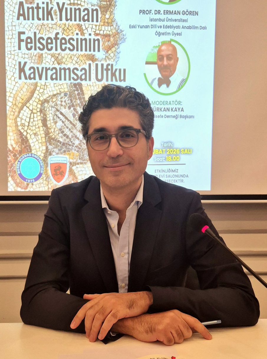 Bursa Sanayicileri ve İşinsanları Derneği (BUSİAD), Bursa Uludağ Üniversitesi ve Bursa Felsefe Kulübü'nün paydaşlığyla düzenlenen Açık Kapı Toplantıları/Felsefe Söyleşileri 2025-2026 döneminin beşinci toplantısında, İstanbul Üniversitesi Eski Yunan Dili ve Edebiyatı Öğretim Üyesi Prof. Dr. Erman Gören, "Antik Yunan Felsefesi'nin Kavramsal Ufku" başlıklı bir sunum gerçekleştirdi.