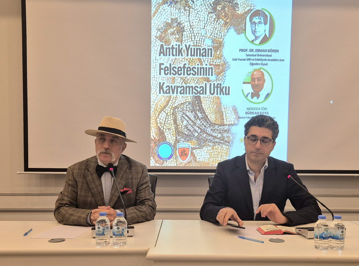 Bursa Sanayicileri ve İşinsanları Derneği (BUSİAD), Bursa Uludağ Üniversitesi ve Bursa Felsefe Kulübü'nün paydaşlığyla düzenlenen Açık Kapı Toplantıları/Felsefe Söyleşileri 2025-2026 döneminin beşinci toplantısında, İstanbul Üniversitesi Eski Yunan Dili ve Edebiyatı Öğretim Üyesi Prof. Dr. Erman Gören, "Antik Yunan Felsefesi'nin Kavramsal Ufku" başlıklı bir sunum gerçekleştirdi.